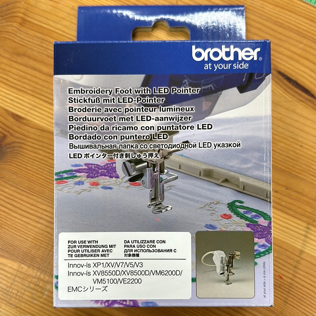 Adjust the needle position accurately with a LED pointer built-in to the embroidery foot. For the V Series.