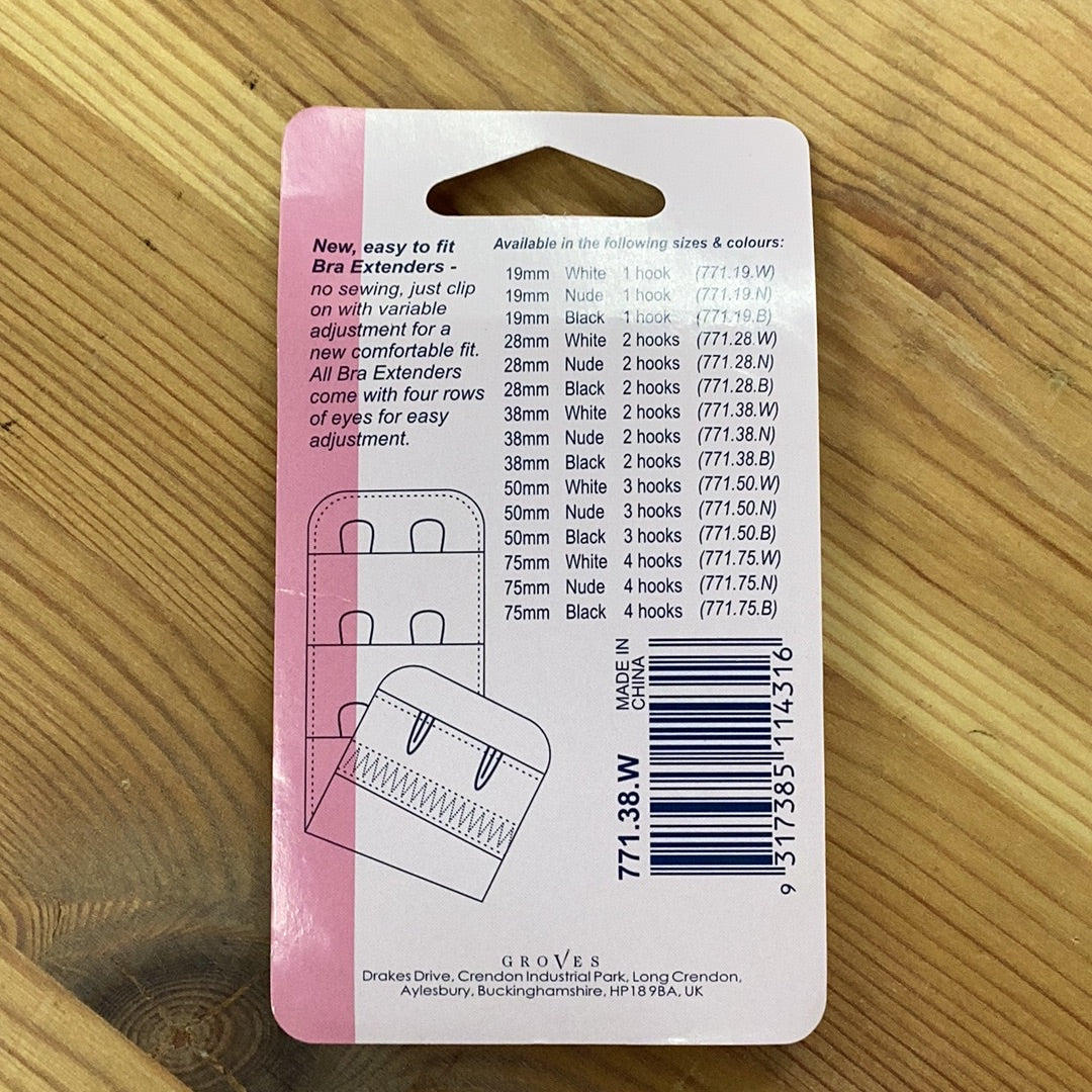 Eliminate the discomfort of a tight bra with Hemline's 38mm Bra Extender. Simply attach the 2 hooks to your existing bra for an easy fit with no sewing required. Enjoy variable adjustment and added comfort with this convenient and helpful accessory.