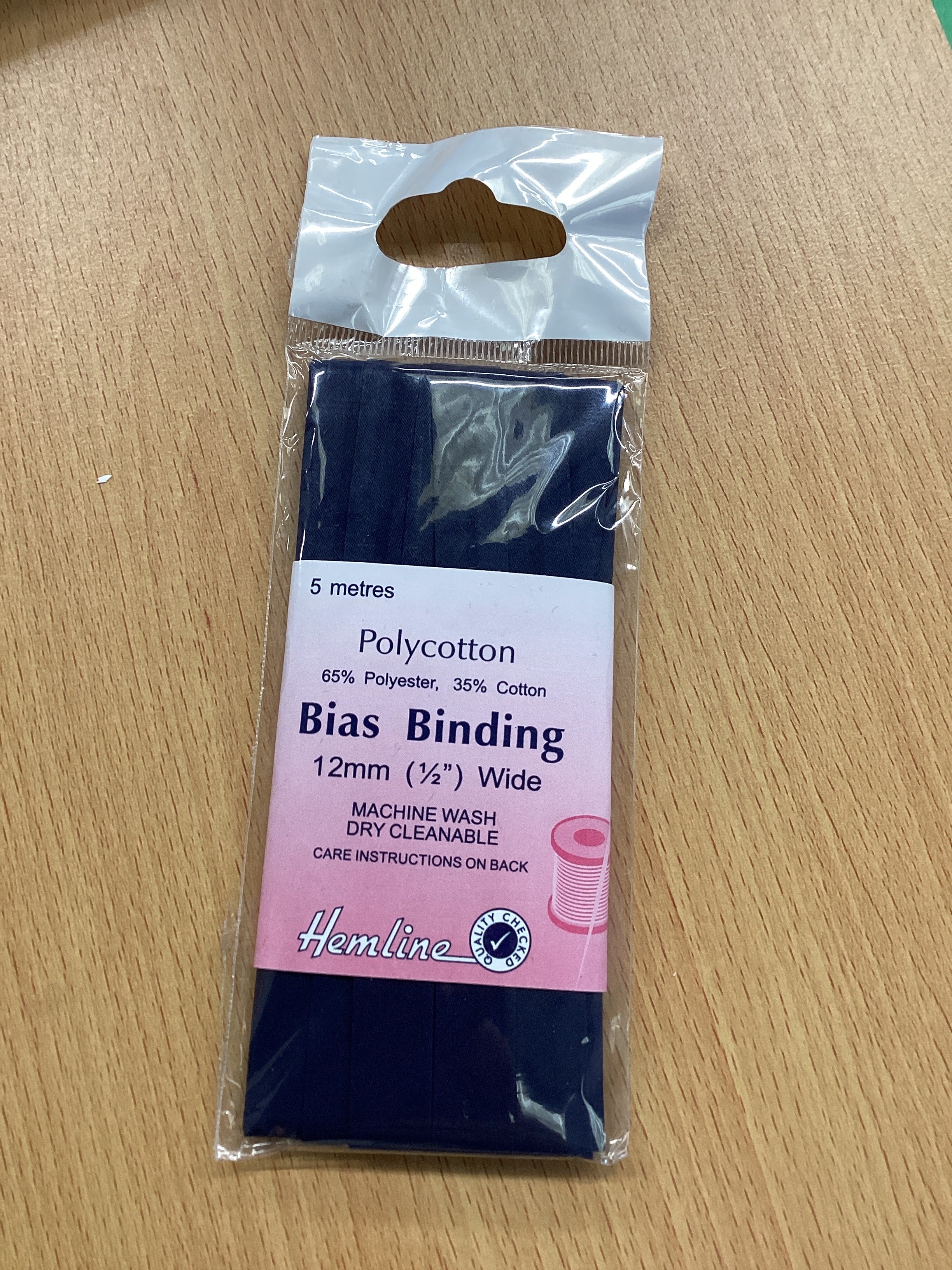Navy Hemline Bias Binding: 5m x 12mm - High Quality, Soft, and Washable. Perfect for Edges and Hem Facing.