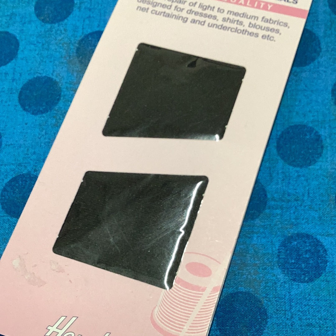 Hemline Repair Fabric Iron On 33x12cm: Black. For repairing and reinforcing fine and medium materials, including voile, polyester, nylon and lightweight cottons. Iron on instructions: place fabric on firm surface, cut piece slightly larger than tear, set iron to wool setting and press for 20 seconds. Can also be used to repair neoprene dry suits, wet suits, waders, neoprene gloves and boots, orthopedic supports, and lycra body suits. Heat protection with reusable heat shielding paper. Machine washable. Stretch fabric for flexibility and comfort.
