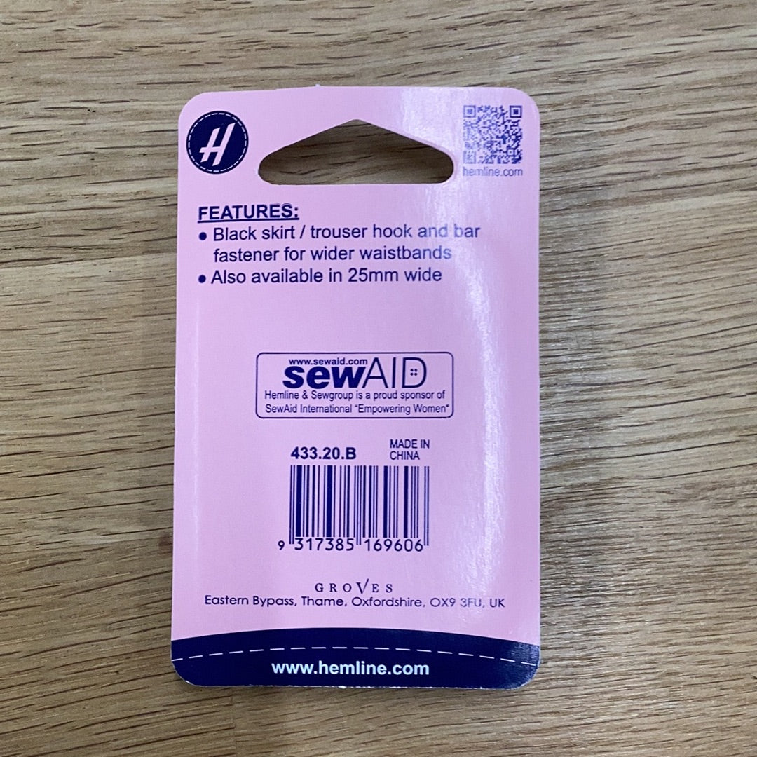 Securely fasten your skirts and trousers with the Hemline extra long black hook and bar fastener. Perfect for wider waistbands, these 20mm hooks and bars provide a reliable hold, keeping you comfortable and confident all day long.