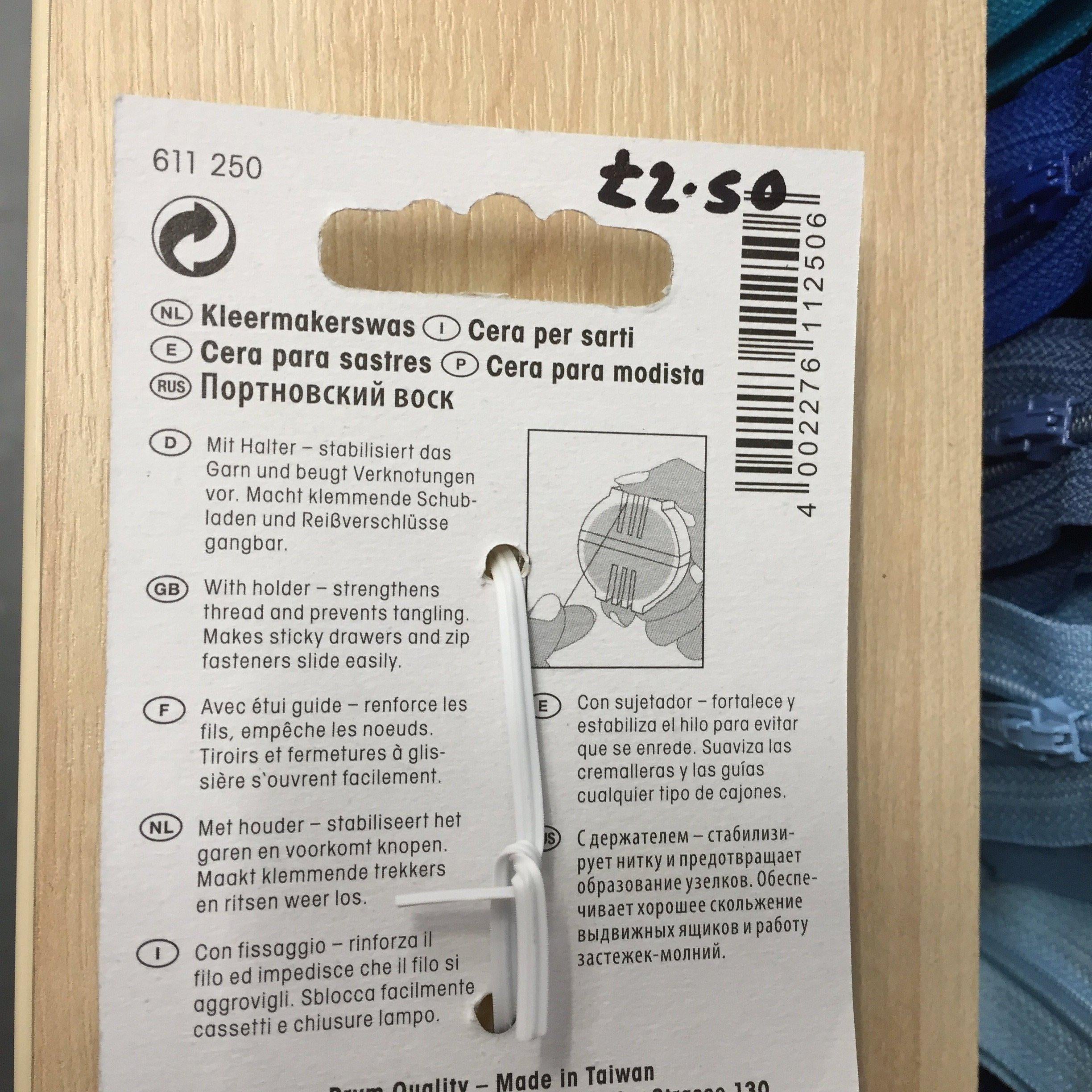 Thus, the thread slides smoothly through the material and is not frayed nor can it get knotted. But not only thread, but also zip fasteners or jammed drawers can be freed up with the universally applicable dressmaker’s wax.