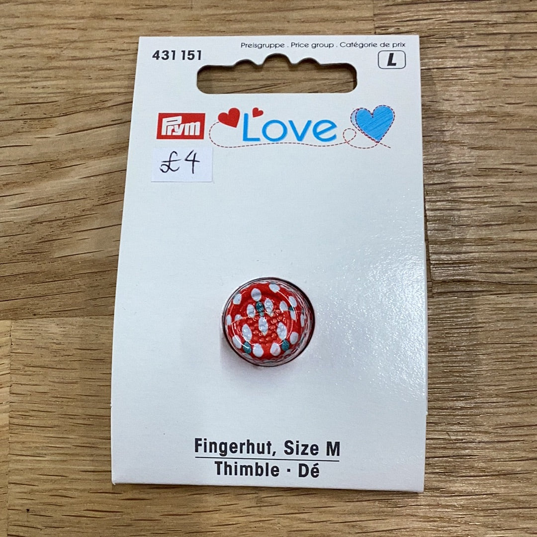 The Prym Love Thimble in size M is here to make your sewing experience more enjoyable! With its vibrant red color and playful white and green dots, this thimble not only protects your finger but also adds a touch of fun to your stitching. Say goodbye to tedious sewing and hello to a more delightful one.