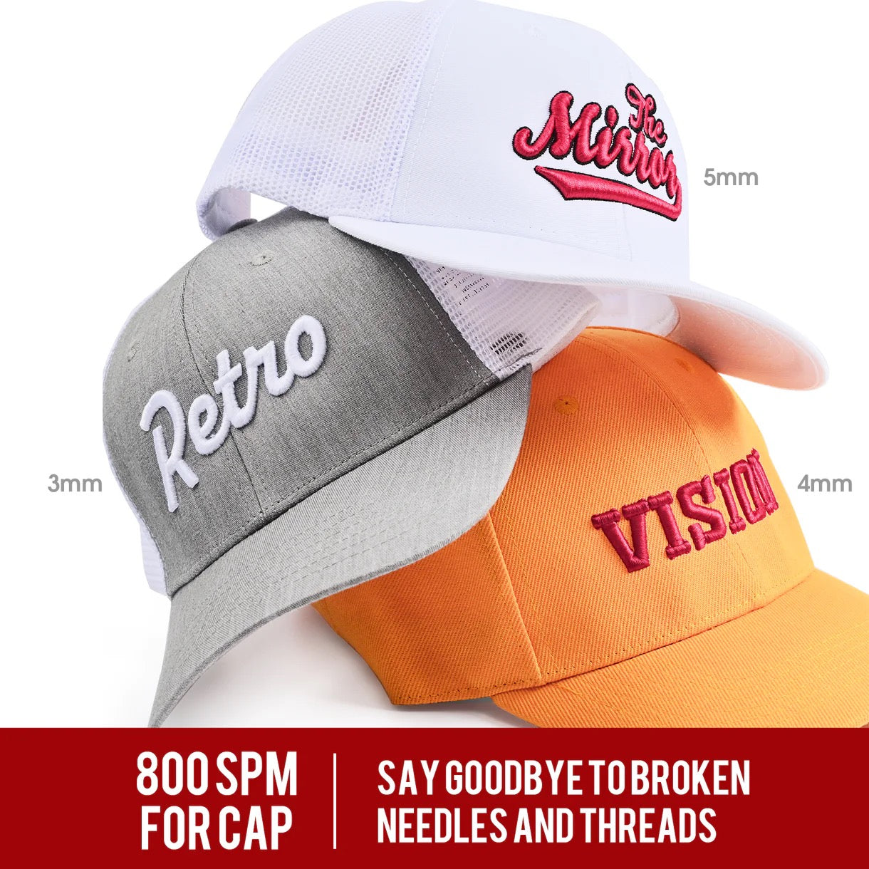Use THE MIRROR to embroider hats, clothing, bags, hoodie jackets, leather, shoes, patches and more.